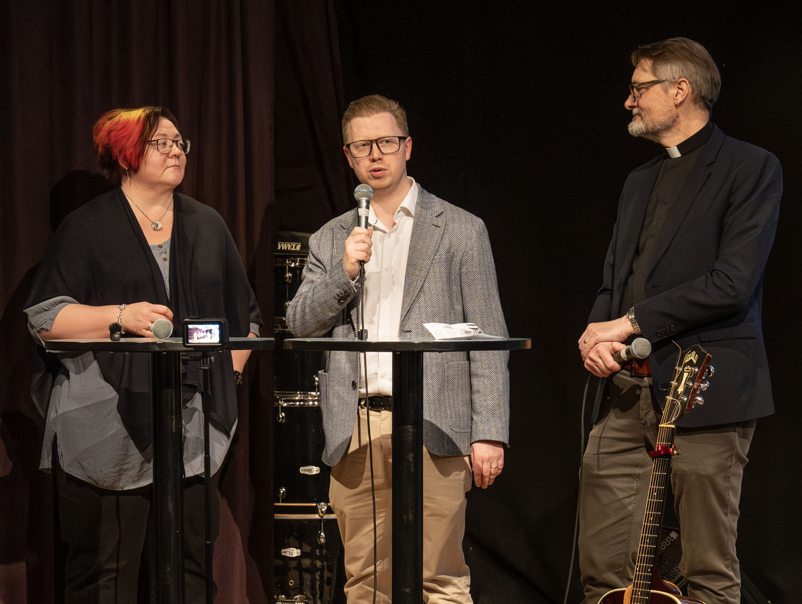 Med sig har hon Lasse Forslund, Janne Sund och Peter Widner.